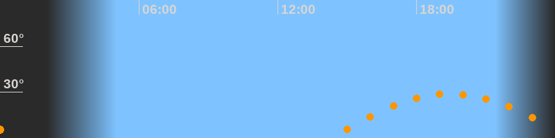 | Höchster Stand (Kulmination) | 19:27 Uhr (h = 28,9°) |