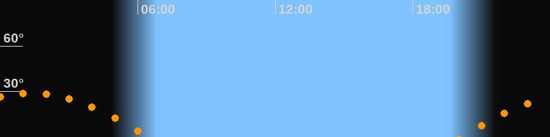 | Untergang | 06:30 Uhr im Westen (αAz = 254,2°) |