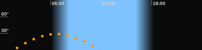 | Höchster Stand (Kulmination) | 06:40 Uhr (h = 28,9°) |