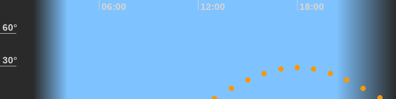 | Höchster Stand (Kulmination) | 18:00 Uhr (h = 28,9°) |