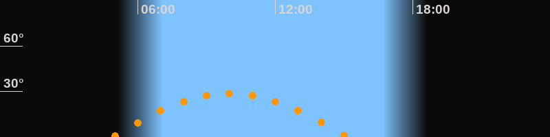 | Höchster Stand (Kulmination) | 10:00 Uhr (h = 28,9°) |