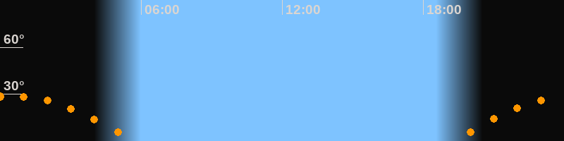 | Aufgang | 19:15 Uhr im Osten (αAz = 105,8°) |