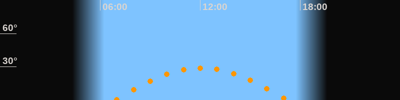 | Höchster Stand (Kulmination) | 12:03 Uhr (h = 28,9°) |