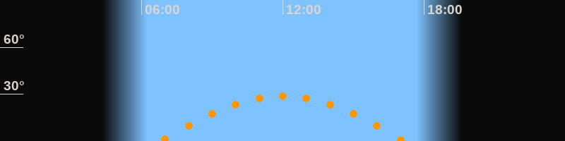 | Höchster Stand (Kulmination) | 11:59 Uhr (h = 28,9°) |