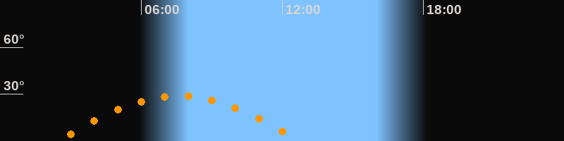 Höchster Stand (Kulmination)07:36 Uhr (h = 28,9°)