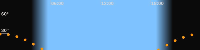 Höchster Stand (Kulmination)00:04 Uhr (h = 28,9°)