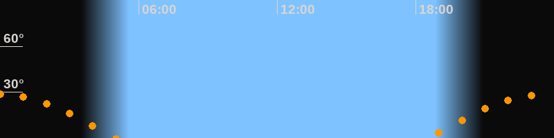 Höchster Stand (Kulmination)23:44 Uhr (h = 28,9°)