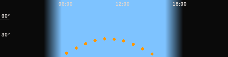 | Höchster Stand (Kulmination) | 11:25 Uhr (h = 28,9°) |