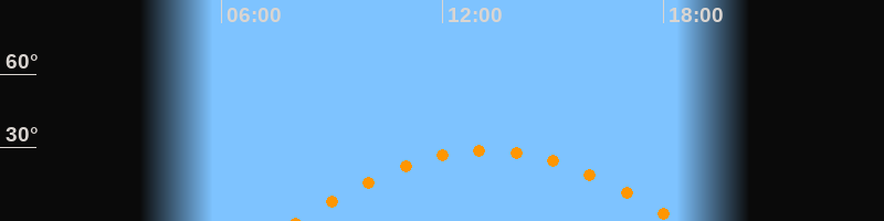 | Höchster Stand (Kulmination) | 13:12 Uhr (h = 28,9°) |