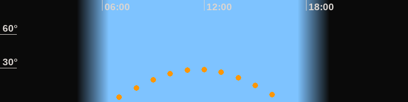 | Höchster Stand (Kulmination) | 11:38 Uhr (h = 28,9°) |