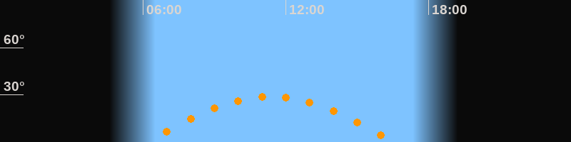 | Höchster Stand (Kulmination) | 11:22 Uhr (h = 28,9°) |