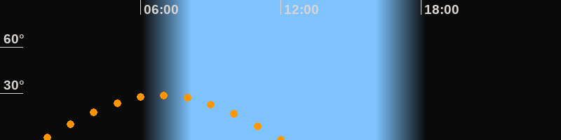 | Höchster Stand (Kulmination) | 06:55 Uhr (h = 28,9°) |
