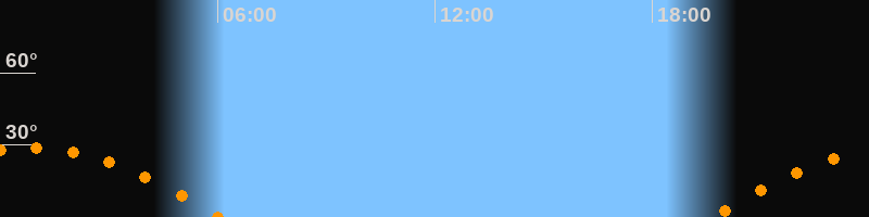 | Aufgang | 19:38 Uhr im Osten (αAz = 105,8°) |