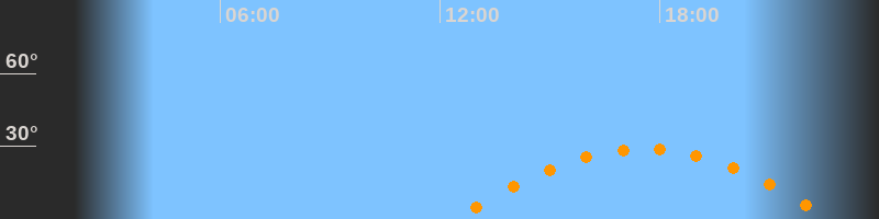 | Höchster Stand (Kulmination) | 17:33 Uhr (h = 28,9°) |