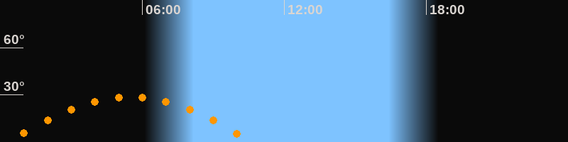 | Höchster Stand (Kulmination) | 05:29 Uhr (h = 28,9°) |