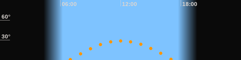 | Höchster Stand (Kulmination) | 12:02 Uhr (h = 28,9°) |