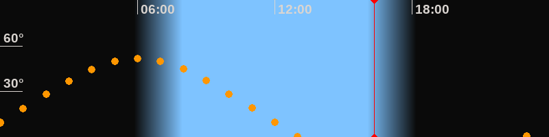 | Untergang | 13:06 Uhr im Westen (αAz = 290,9°) |