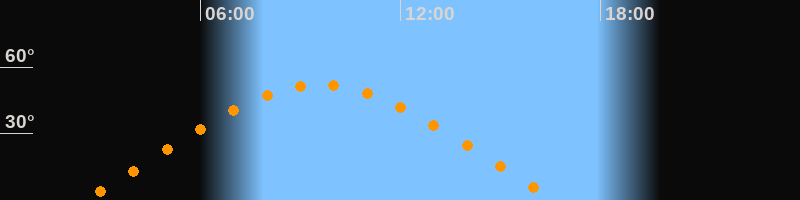 | Höchster Stand (Kulmination) | 09:36 Uhr (h = 51,9°) |