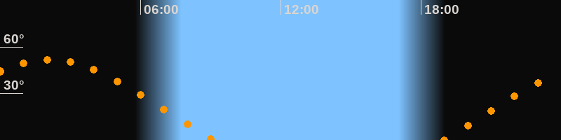 | Aufgang | 18:55 Uhr im Osten (αAz = 69,1°) |
