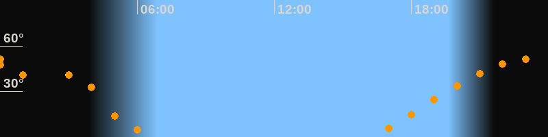 | Aufgang | 16:19 Uhr im Osten (αAz = 69,1°) |