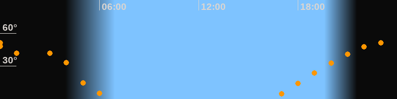 | Aufgang | 16:23 Uhr im Osten (αAz = 69,1°) |
