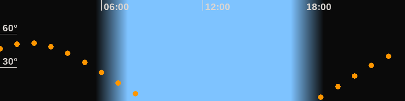 | Aufgang | 18:31 Uhr im Osten (αAz = 69,1°) |
