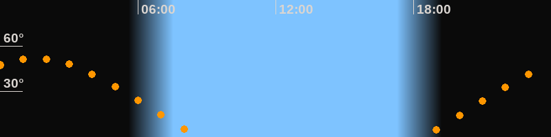 | Aufgang | 18:23 Uhr im Osten (αAz = 69,1°) |