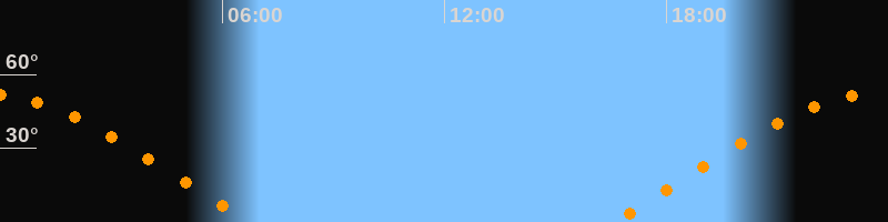 | Aufgang | 16:31 Uhr im Osten (αAz = 69,1°) |