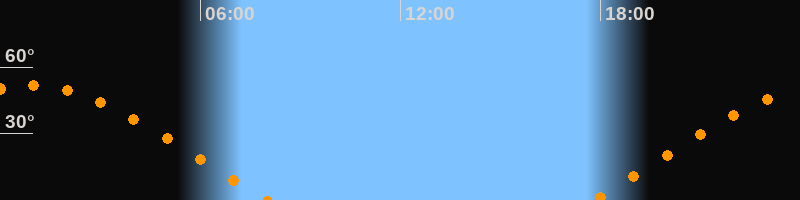 | Aufgang | 17:46 Uhr im Osten (αAz = 69,1°) |