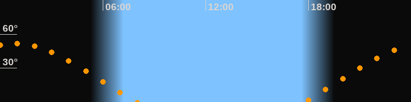 | Aufgang | 17:43 Uhr im Osten (αAz = 69,1°) |