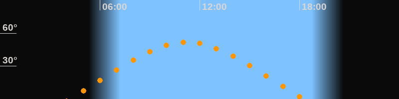 | Untergang | 18:19 Uhr im Westen (αAz = 290,9°) |
