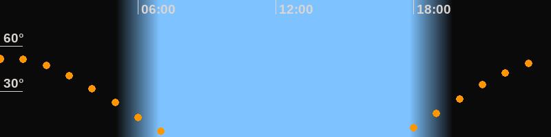 | Aufgang | 17:13 Uhr im Osten (αAz = 69,1°) |