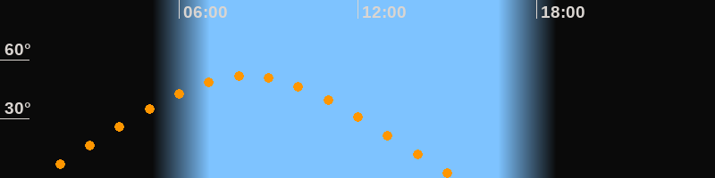 | Aufgang | 01:10 Uhr im Osten (αAz = 69,1°) |