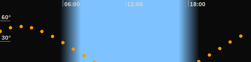 | Aufgang | 18:49 Uhr im Osten (αAz = 69,1°) |