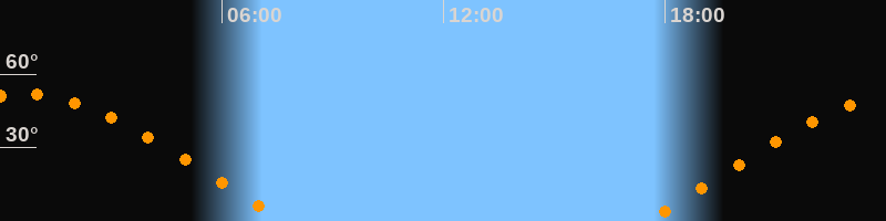 | Aufgang | 17:28 Uhr im Osten (αAz = 69,1°) |