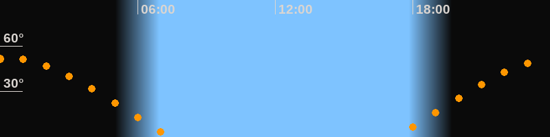 | Untergang | 07:28 Uhr im Westen (αAz = 290,9°) |