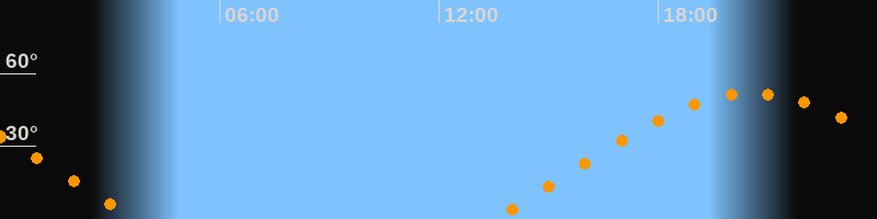 | Aufgang | 13:28 Uhr im Osten (αAz = 69,1°) |