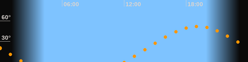 | Aufgang | 11:59 Uhr im Osten (αAz = 69,1°) |