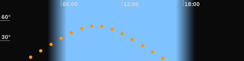 | Aufgang | 02:17 Uhr im Osten (αAz = 69,1°) |