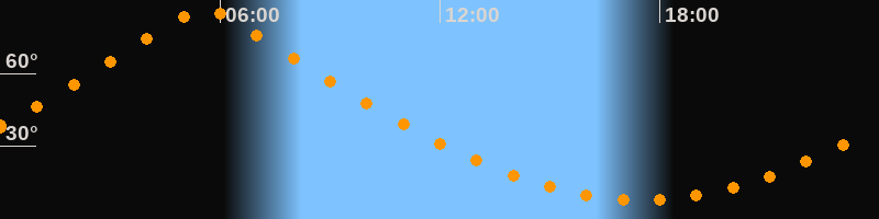 | Höchster Stand (Kulmination) | 05:34 Uhr (h = 86,6°) |