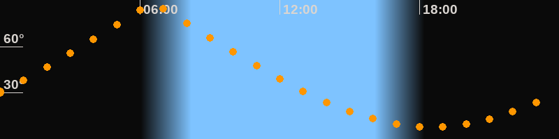 | Höchster Stand (Kulmination) | 06:32 Uhr (h = 86,6°) |