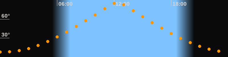 | Höchster Stand (Kulmination) | 12:20 Uhr (h = 86,6°) |