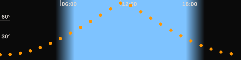 | Höchster Stand (Kulmination) | 12:15 Uhr (h = 86,6°) |