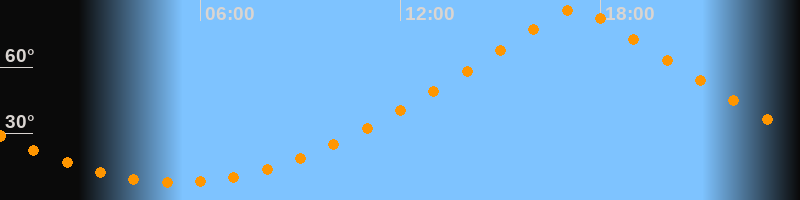 | Höchster Stand (Kulmination) | 17:15 Uhr (h = 86,6°) |
