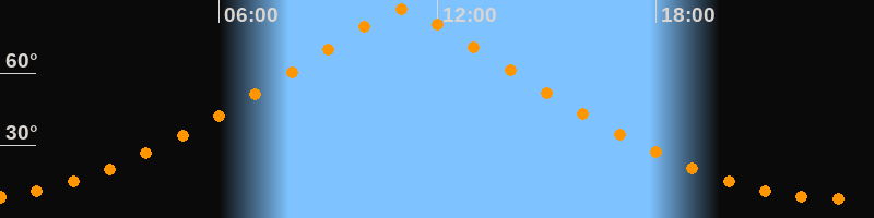 | Höchster Stand (Kulmination) | 11:02 Uhr (h = 86,6°) |