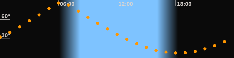 | Höchster Stand (Kulmination) | 06:18 Uhr (h = 86,6°) |