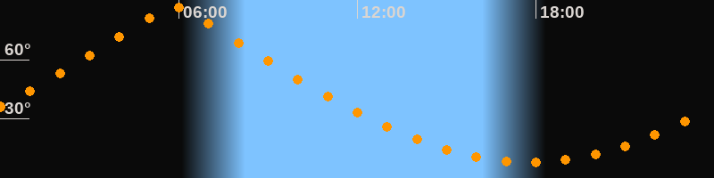 | Höchster Stand (Kulmination) | 05:50 Uhr (h = 86,6°) |