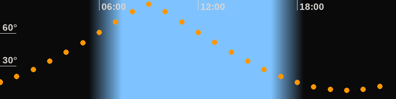 | Höchster Stand (Kulmination) | 09:00 Uhr (h = 86,6°) |
