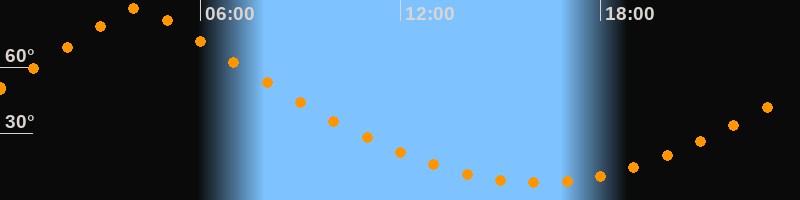 | Höchster Stand (Kulmination) | 04:09 Uhr (h = 86,6°) |