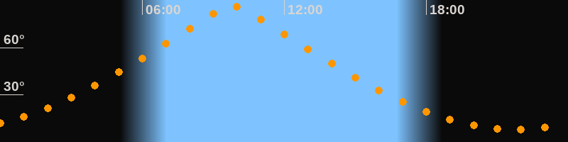 | Höchster Stand (Kulmination) | 09:48 Uhr (h = 86,6°) |